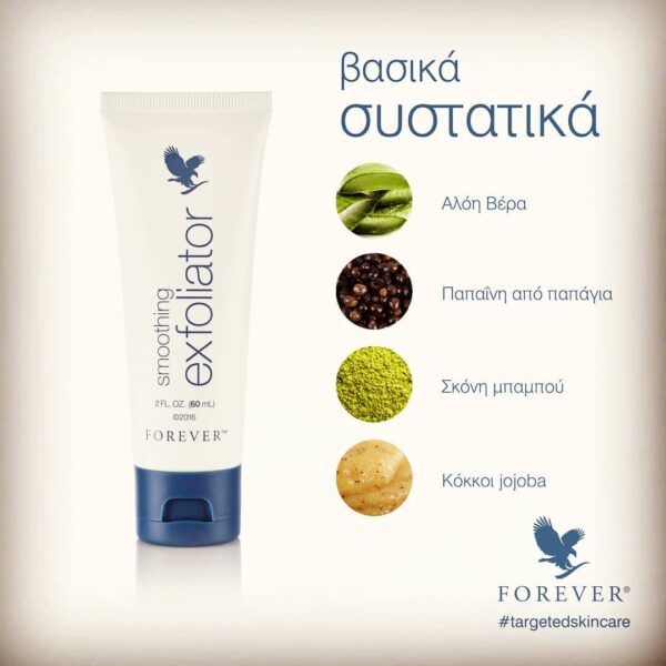 Το γερασµένο δέρµα µπορεί να φαίνεται λεπτό, κουρασµένο και θαµπό. To κατάλληλο προϊόν απολέπισης απομακρύνει τα νεκρά κύταρρα αποκαλύπτοντας πιο φωτεινή επιδερμίδα, ομαλοποιώντας τον τόνο και την υφή της. Το Smοothing Exfoliator της Forever είναι ιδιαίτερα απαλό, χωρίς να ταλαιπωρεί το δέρμα αλλά αναδεικνύοντας το νέο και απαλό δέρµα που βρίσκεται από κάτω.
